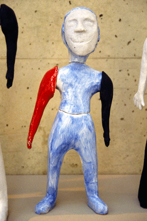 This series of early figure portraits was exhibited initially as a solo presentation at the Frans Hals Museum in Haarlem before being installed for the large group exhibition Brandend Zand at Museum Beelden Aan Zee in Scheveningen. These ceramic works were made with a combination of mold-making and hand-building processes as well as a range of glaze and surface techniques. Utilising a relatively small number of modular forms for limbs and bodies a diverse range of figures was generated. The intrinsically composite nature of the sculptures coupled with a variable application of surface treatments produced a series of characters portraying an assortment of idiosyncracies. They depict individuals with specific traits which together form a related and complemtentary group. These figures used contrasting qualities to provide the possibility for each to be understood with the necessary degree of interpretation. The works are small enough to be seen as puppets though the ceramic medium is also suggestive perhaps of more ancient, mumified figures.